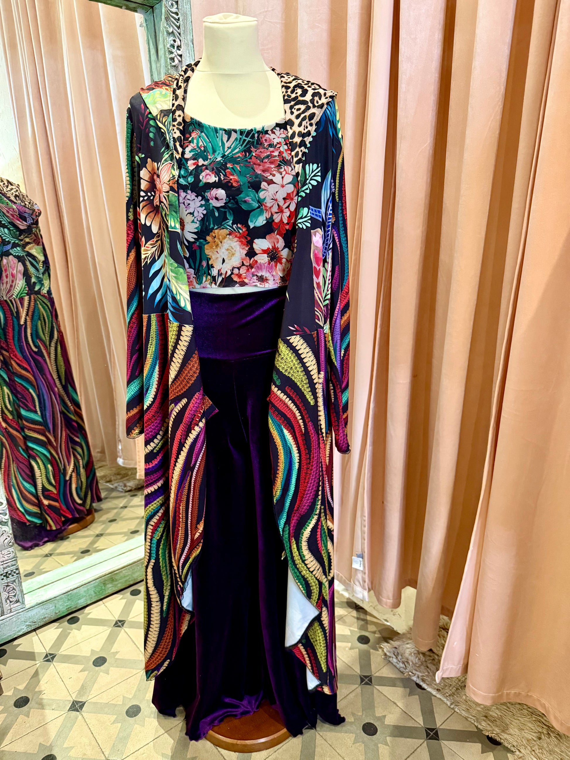 Uniikki hupullinen kietaisumekko. Koko m/l. Pesu 30 asteessa. Ommeltu Helsingissä. Polyesteri ja elastaani.