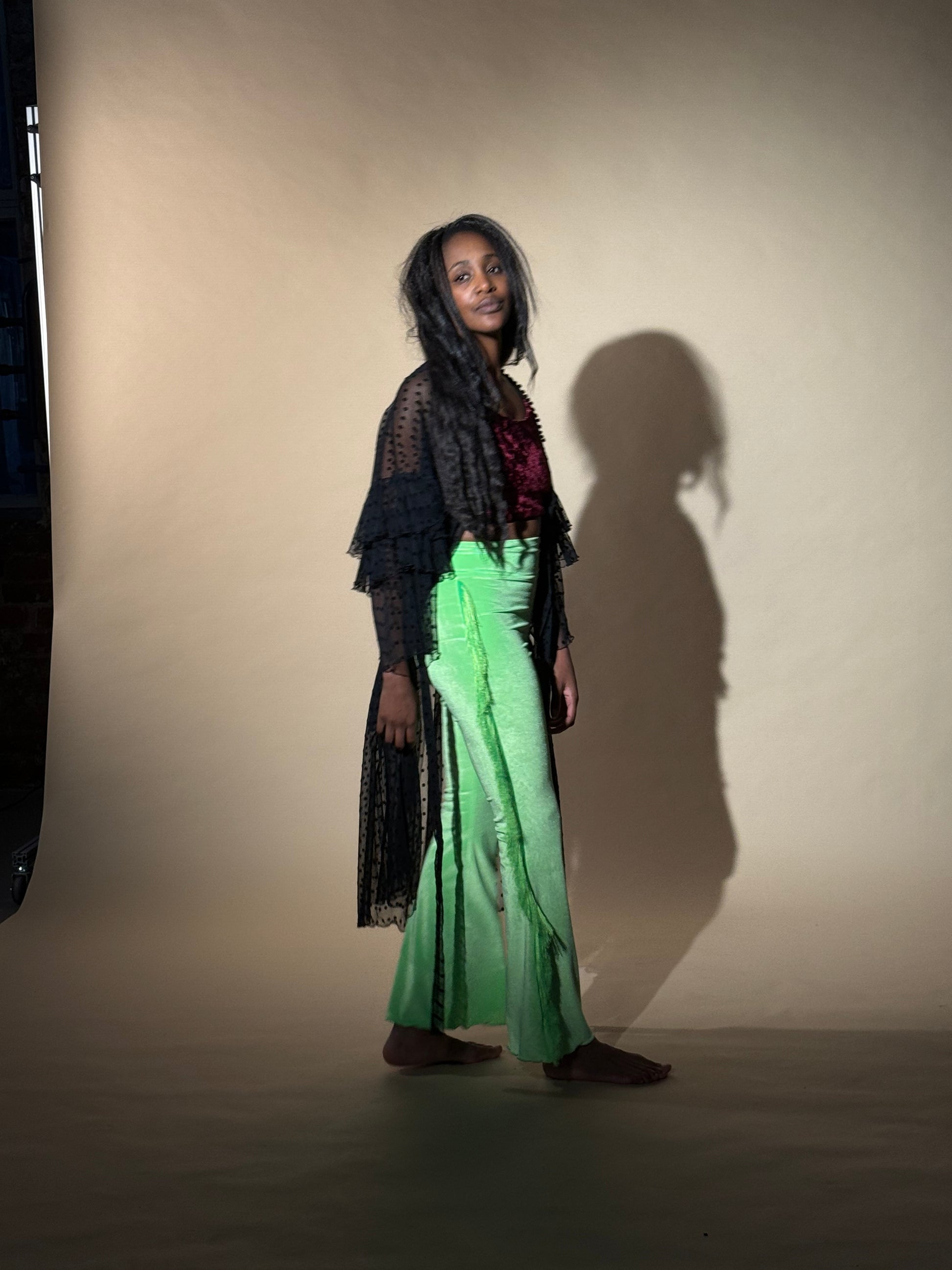 Unique Fringe Flare/ Neon Green