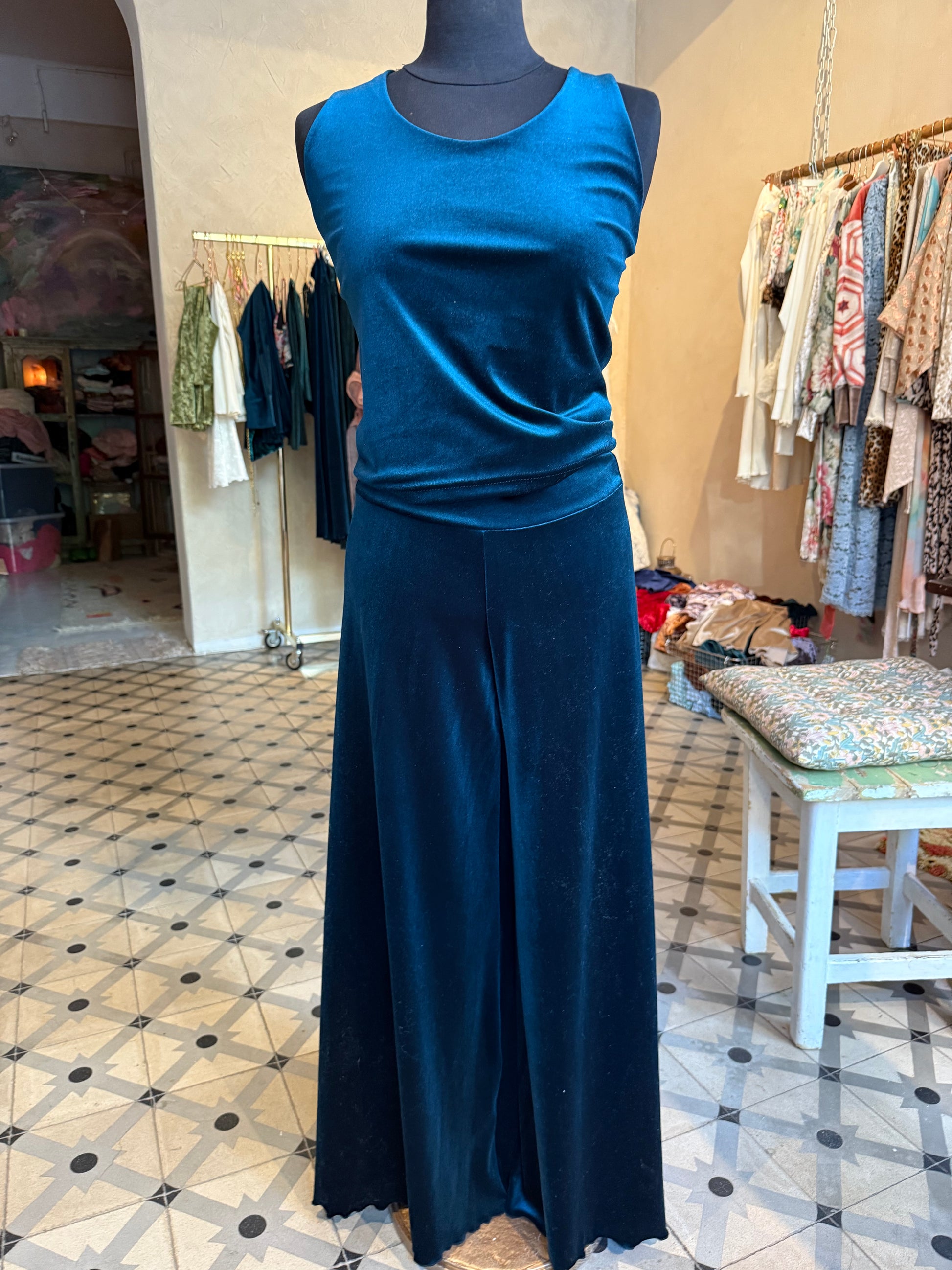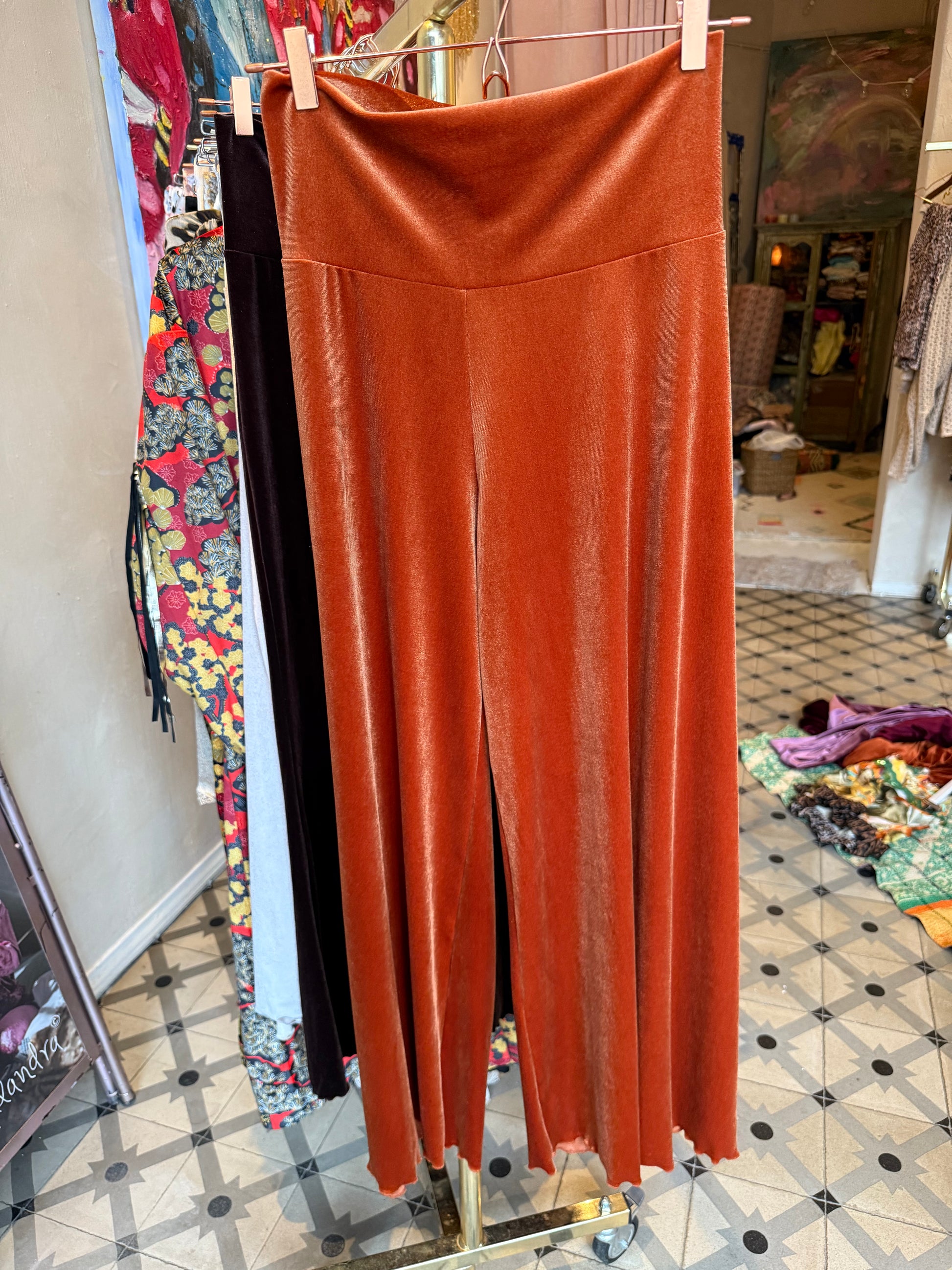 Samettihousut valmistetaan Raumalla, niissä on korkea vyötärö ja vaihteleva valikoima värejä. Materiaali polyesteri ja elastaani. Pesu 40 asteessa ilman huuhteluaineita.